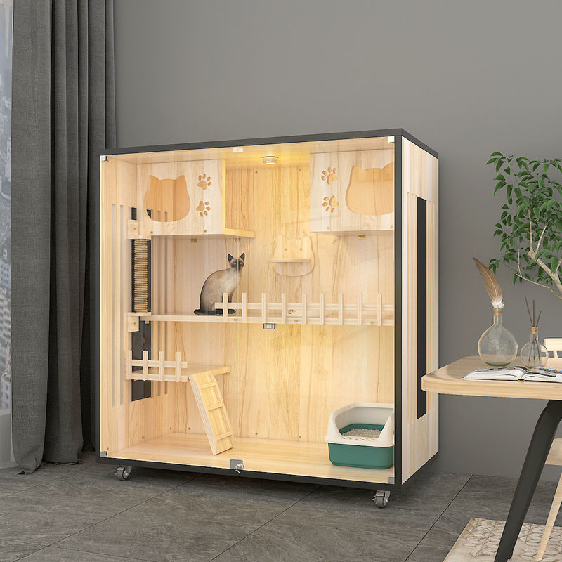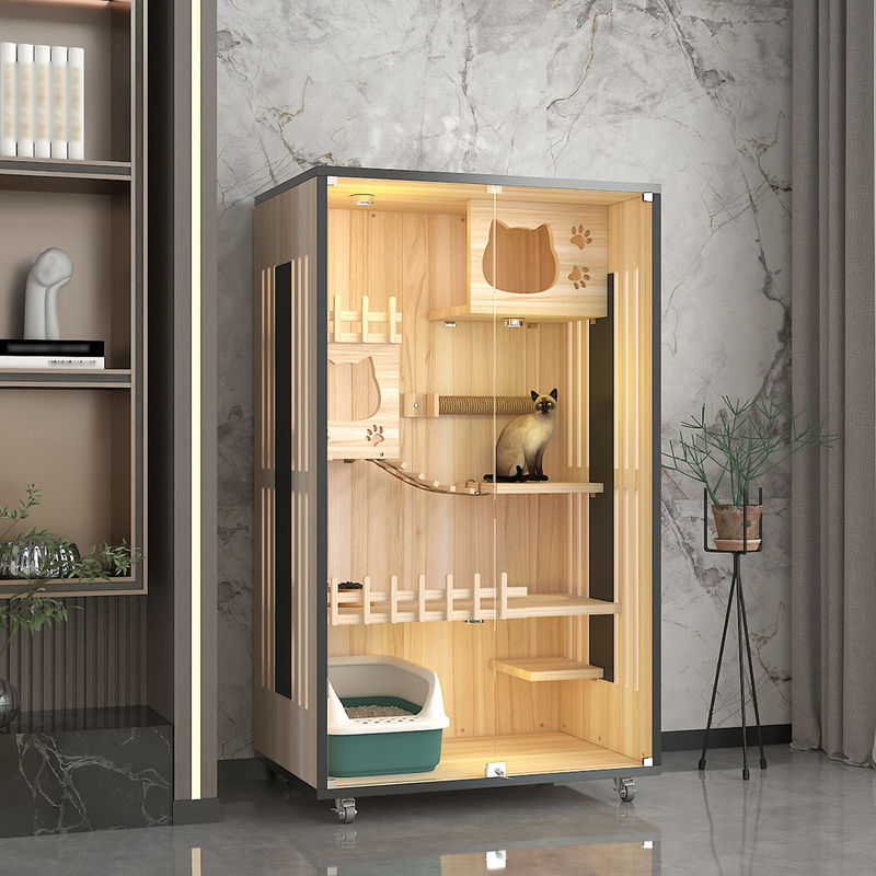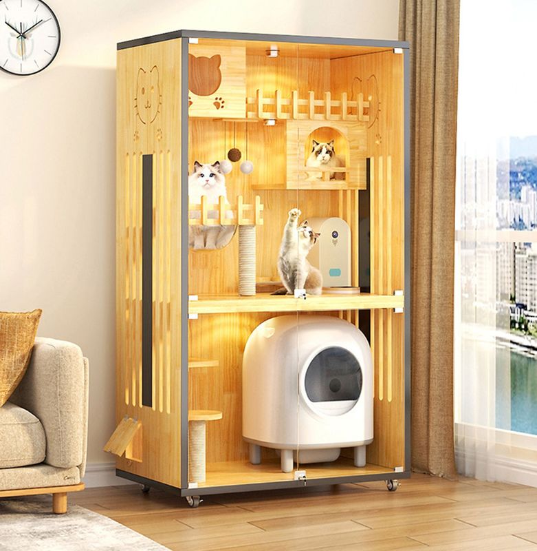 Diseño del marco que sube: Los chalets del gato vienen con los marcos que suben incorporados o conectados para que los gatos suban y se muevan alrededor. Los marcos que suben se hacen generalmente de la madera y ofrecer las plataformas múltiples y los puntos que suben, permitiendo que los gatos muestren apagado sus habilidades y curiosidad de arrastre.