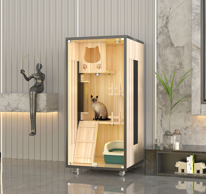 Gatería u hotel del animal doméstico: En gatería u hotel del animal doméstico, el chalet del gato con el marco que sube es también uno de los muebles comunes del animal doméstico. Proporciona un espacio de reclinación lujoso y entretenido para que los gatos sientan cuidado en exceso y cuidado para.