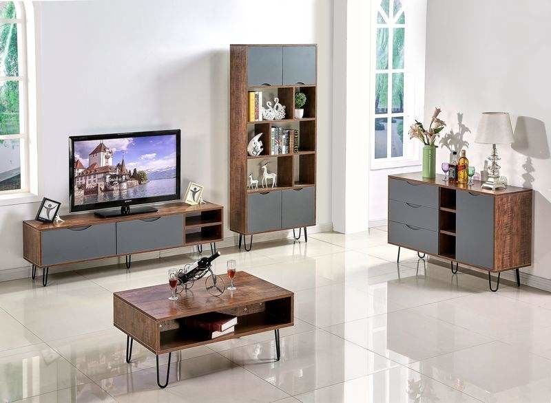 Diseño estructural: El diseño estructural de un bastidor de la televisión incluye generalmente el marco principal, la división, los cajones, y el espacio de almacenamiento abierto. Estos diseños organizan el espacio razonablemente, proveyendo de usted el suficiente espacio de almacenamiento para almacenar DVDs, de mandos a distancia, de las videoconsolas, y de otros accesorios de la TV.