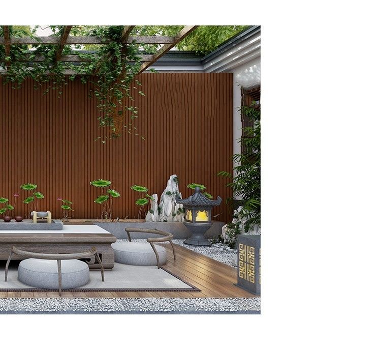 Cercas y paredes de separación: El revestimiento de madera al aire libre se puede utilizar para adornar las cercas y las paredes de separación, aumentando la belleza de la cerca y la aislamiento de la pared de separación. Al mismo tiempo, el diseño de la parrilla también facilita la penetración de la ventilación y de la luz.