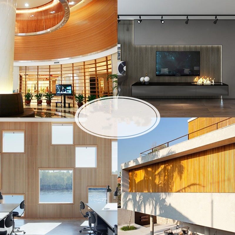 Lugares comerciales: El tipo tablón interior plástico de madera de la protección del medio ambiente de la parrilla de WPC se puede utilizar para la decoración de lugares comerciales, tales como pasillos del hotel, centros comerciales, oficinas, etc. Sus características favorables al medio ambiente y efecto estético añaden elegancia y el lujo al lugar del negocio y atraen la atención de clientes.