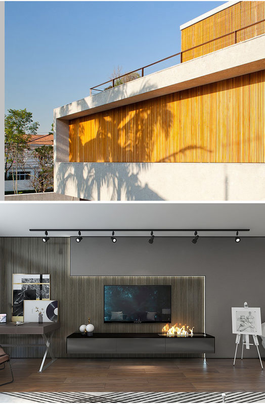 Decoración de la sala de estar y del dormitorio: El tipo tablón interior plástico de madera de la protección del medio ambiente de la rejilla de WPC es conveniente para la decoración de la sala de estar y dormitorio y otros espacios interiores. Su efecto de madera rico del grano y características respetuosas del medio ambiente traen una atmósfera caliente y natural al espacio interior, permitiendo que usted disfrute de un ambiente vivo cómodo en casa.