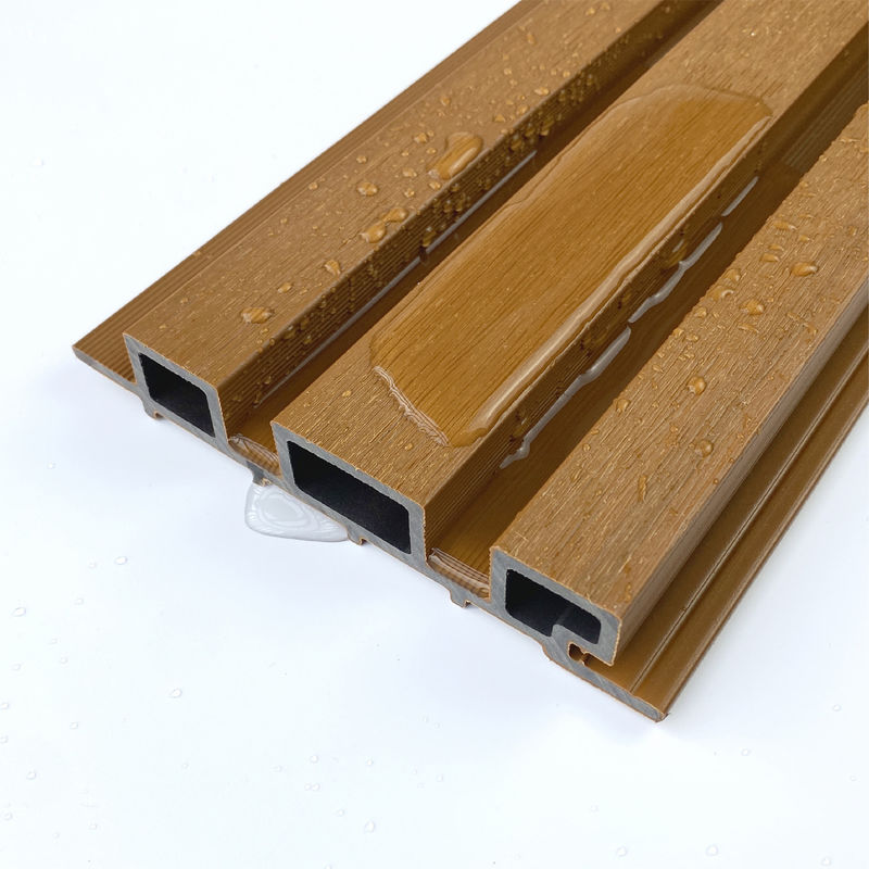 material compuesto del Madera-plástico: La superficie del panel de pared se hace del material compuesto del madera-plástico, que combina las ventajas de la textura de madera y del plástico. WPC trae color rico y textura de madera natural al tablón, y tiene características impermeables, anticorrosión y desgaste-resistentes, aumentando la durabilidad y la belleza del tablón.