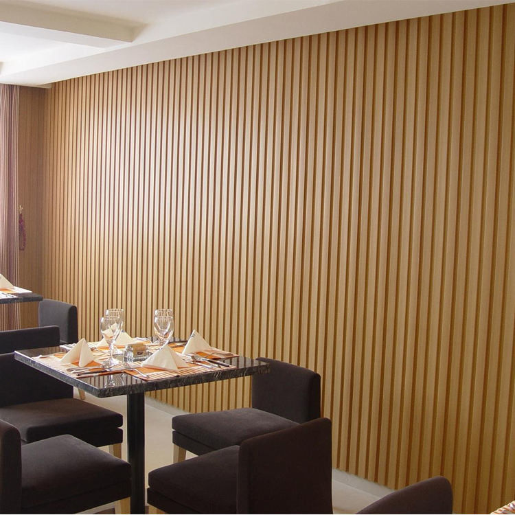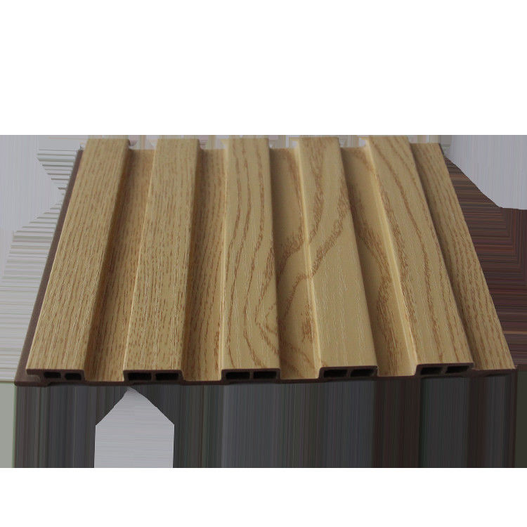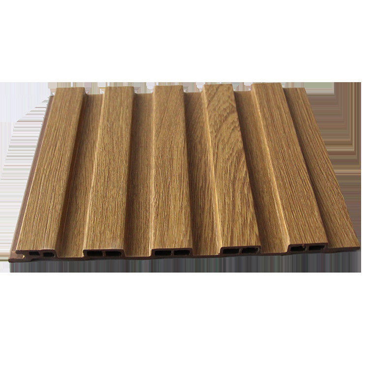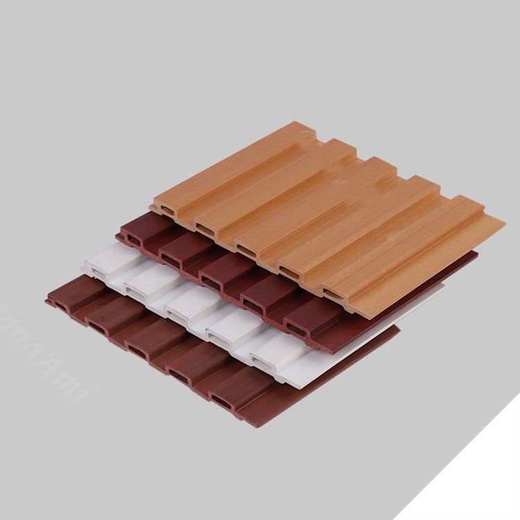 tablero acanalado pared del Madera-plástico: La superficie del tablero del revestimiento de la pared se hace de tablero acanalado pared del madera-plástico. Este tablero acanalado tiene la belleza natural de la textura de madera, haciéndola excepcional en la decoración interior. El diseño de los paneles acanalados no sólo añade a la textura de la pared, pero también crea un efecto de sombra hermoso bajo refracción de la luz.