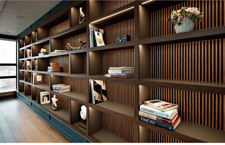 Lugares comerciales: El panel de pared es también conveniente para la decoración de lugares comerciales, tales como pasillos del hotel, edificios de oficinas, centros comerciales, etc. Su diseño y efecto únicos del grano de madera pueden crear una atmósfera de gama alta y una imagen profesional para los lugares comerciales, atrayendo la atención de clientes.