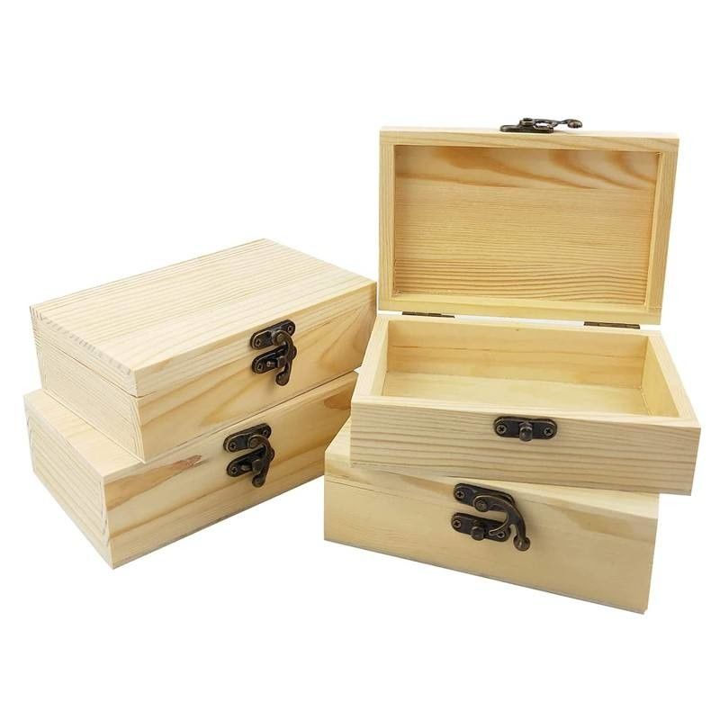 Cajas de regalo sólidas del recuerdo de madera de pino de la caja de madera de la tapa inacabada barata de la bisagra para los artes al por mayor