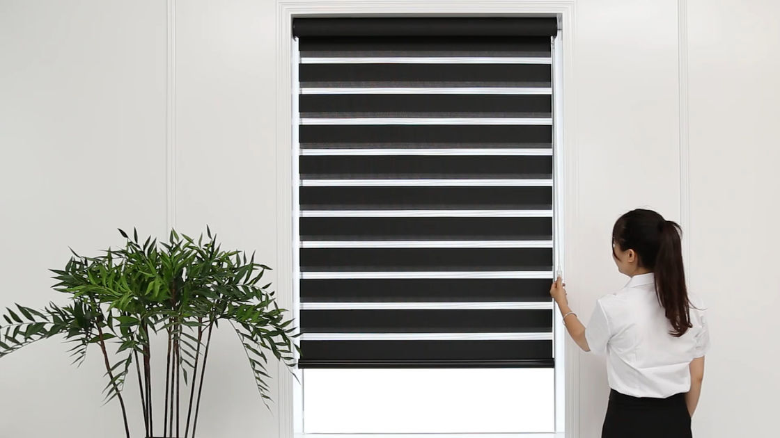 Sombra motorizada ciega de la cebra de las persianas de rodillo del apagón de la cortina de ventana de la cebra sin cuerda negra de las persianas día y noche