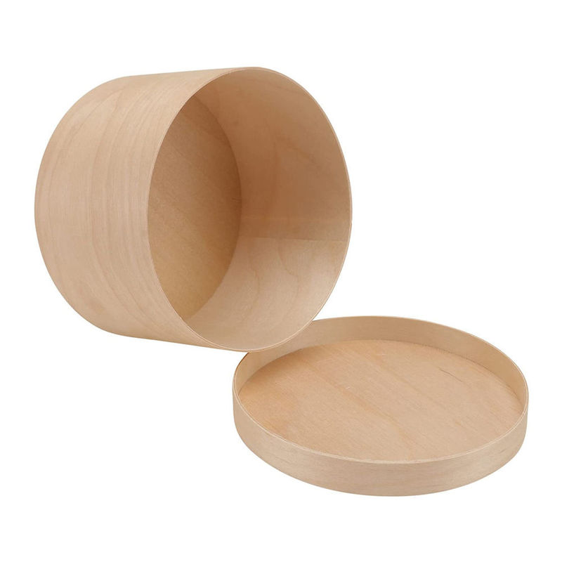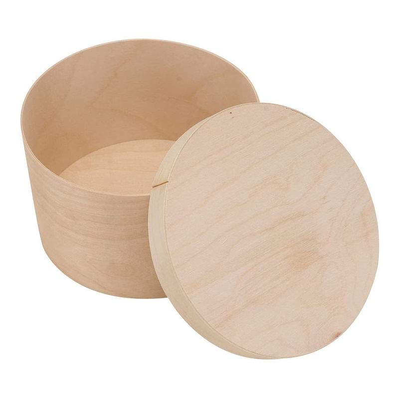 Caja de madera redonda inacabada con la tapa la fusión perfecta de la naturaleza y de la belleza