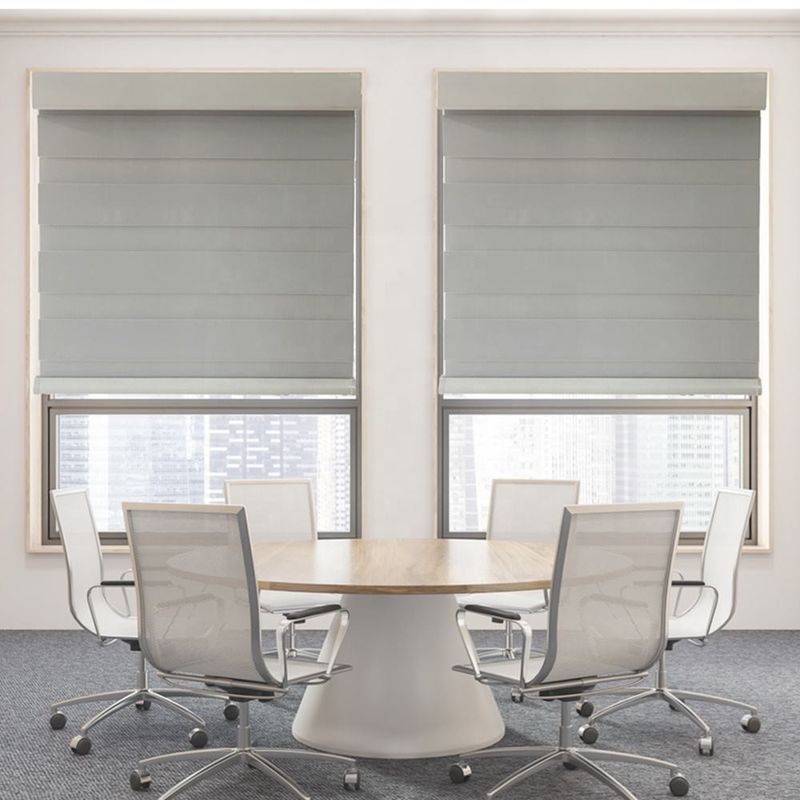 Espacios comerciales: Las persianas eléctricas de la cebra son también ideales para los espacios, los restaurantes y los cafés comerciales de oficina. Su diseño moderno y función de control eléctrica añaden un sentido del estilo y una imagen de alta calidad al espacio comercial.