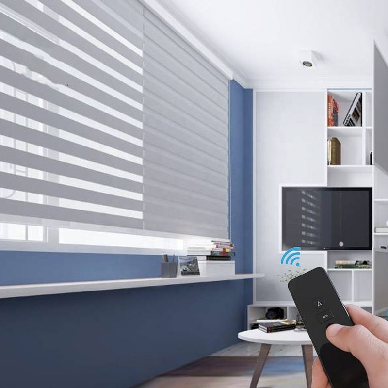 Sistema de control eléctrico: Las persianas se equipan de un sistema de control eléctrico, que realiza la elevación de la cortina y el ajuste entre las dos capas de la cortina de la cebra por teledirigido o el interruptor. El control eléctrico hace la operación más conveniente e inteligente, y el usuario no necesita tirar manualmente de la cortina, ajusta fácilmente la luz y la aislamiento.