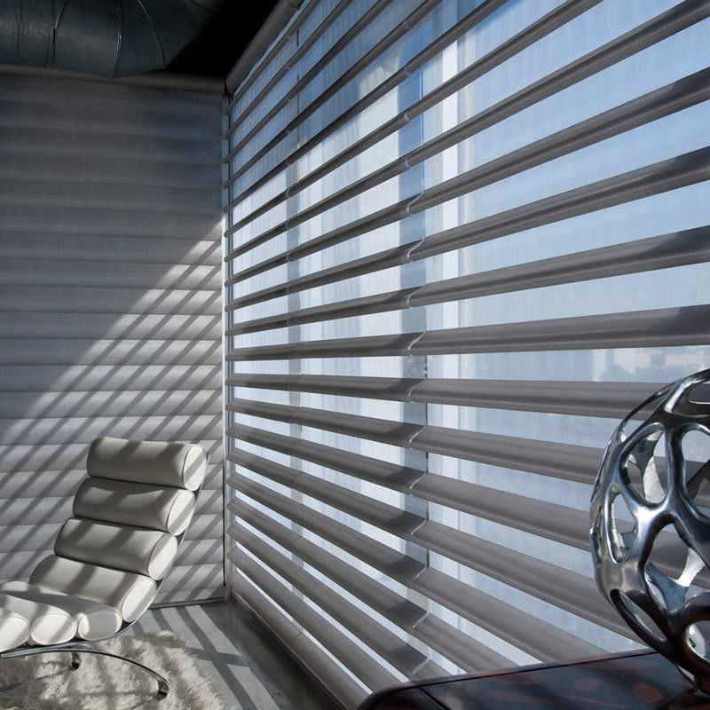 Las persianas eléctricas rayadas del estilo de Shangri-La combinan la elegancia de modelos rayados con la inteligencia de controles eléctricos de convertirse en una opción única para la decoración interior. Es conveniente para una variedad de lugares, no sólo aumentar la belleza del ambiente interior, pero también traer a usuarios una experiencia más inteligente y más cómoda de la cortina.