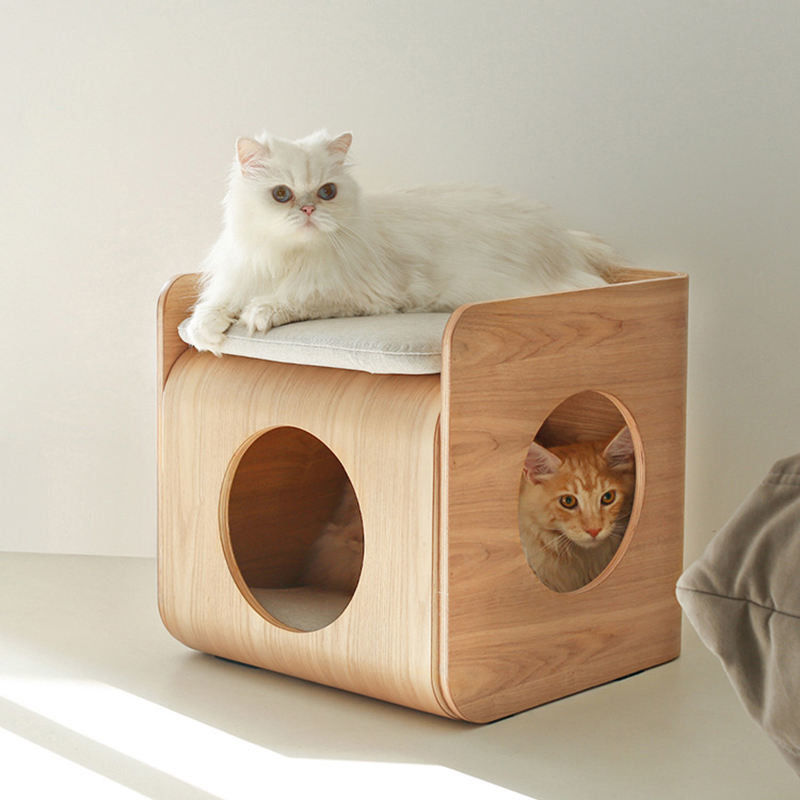 El animal doméstico de madera nórdico de la casa del gato contiene casas y los muebles de madera de lujo del gato de la cama del animal doméstico de los muebles modernos del gato