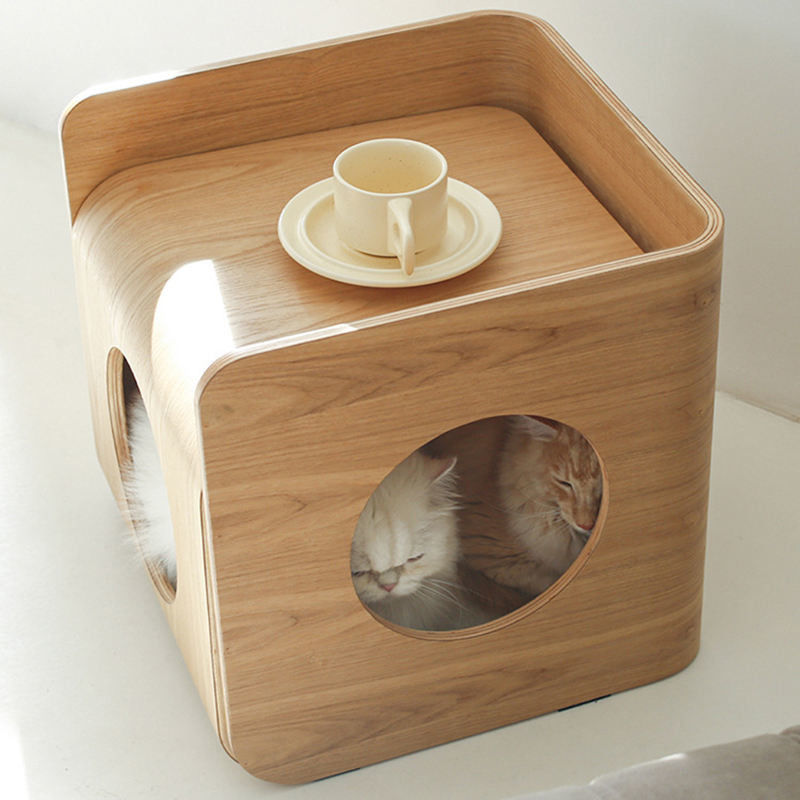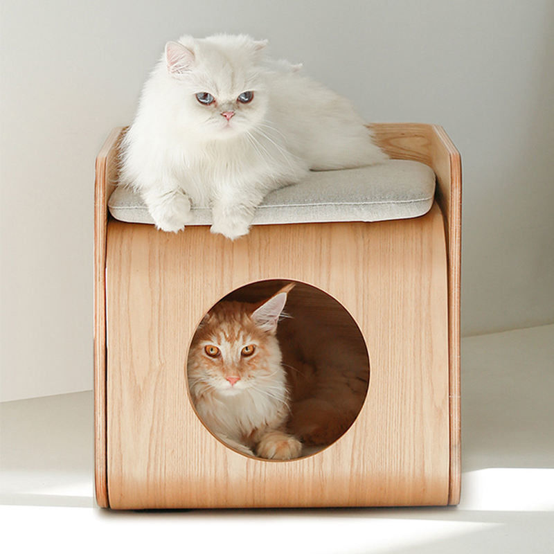 Espacio interior: La casa de madera del gato del cuadrado de los muebles del animal doméstico es conveniente para el espacio interior casero y proporciona un lugar de descanso cómodo para su gato. Colocado en la sala de estar, el dormitorio o el balcón, la casa cuadrada del gato mezcla en la ambiente familiar y crea una esquina de reclinación privada y cómoda para el gato.